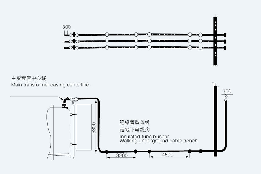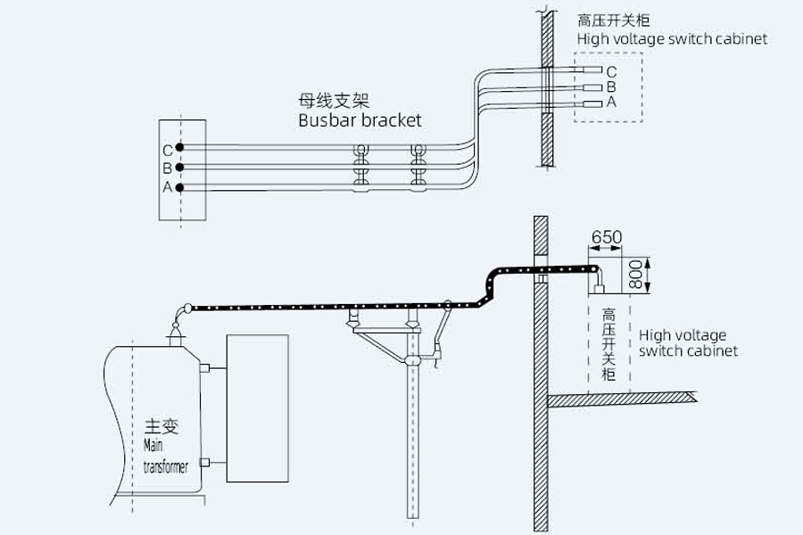 Method 1: Connect the main transformer to the control room This is the most common way of tubular busbar application. The busbar is directly connected from the low-voltage terminals of the main transformer to the switch cabinet terminals in the control room. Main advantages: Suitable for large currents. The wiring is clear and beautiful, and can be fully insulated or semi-insulated. |