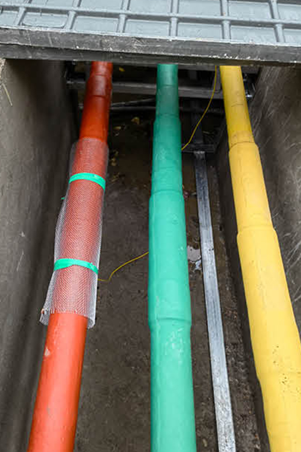 Method 2: The busbar is routed through a cable trench or cable mezzanine The figure below is another common way of applying tubular busbars. The busbars can be connected to switch cabinets through underground cable trenches or cable mezzanines, and can also be used for connections between switch cabinets. This busbar is fully insulated and is particularly suitable for situations where wiring is difficult. |